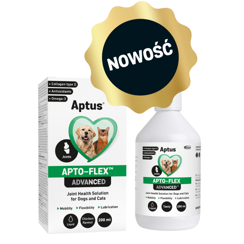 Aptus to linia fińskich suplementów i preparatów weterynaryjnych dla psów i kotów dostępnych w gabinetach weterynaryjnych i sklepach zoologicznych